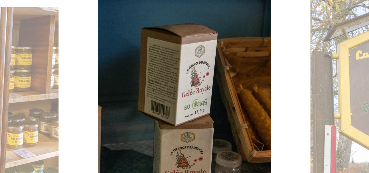 Au-delà du miel, Brigitte valorise le travail de ses abeilles à travers une gamme de produits transformés issus directement de la ruche : gelée royale, propolis et cire, tous élaborés dans le respect du vivant et des cycles naturels.