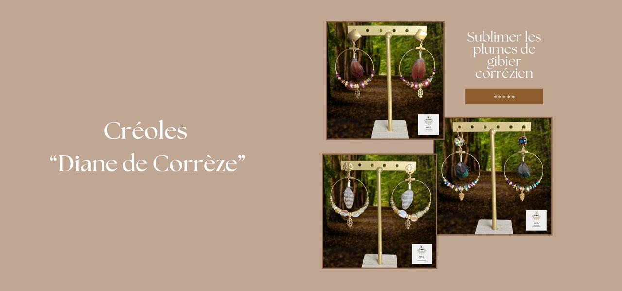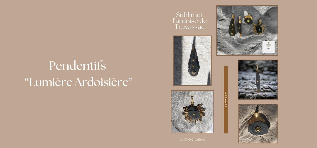 Elle travaille notamment des matériaux emblématiques du territoire, comme l’ardoise de Travassac ou encore la plume de gibier, qu’elle transforme avec délicatesse en pièces élégantes et originales. Chaque bijou est conçu avec soin, dans une démarche artisanale où aucune pièce ne se ressemble, garantissant ainsi des créations singulières et authentiques.